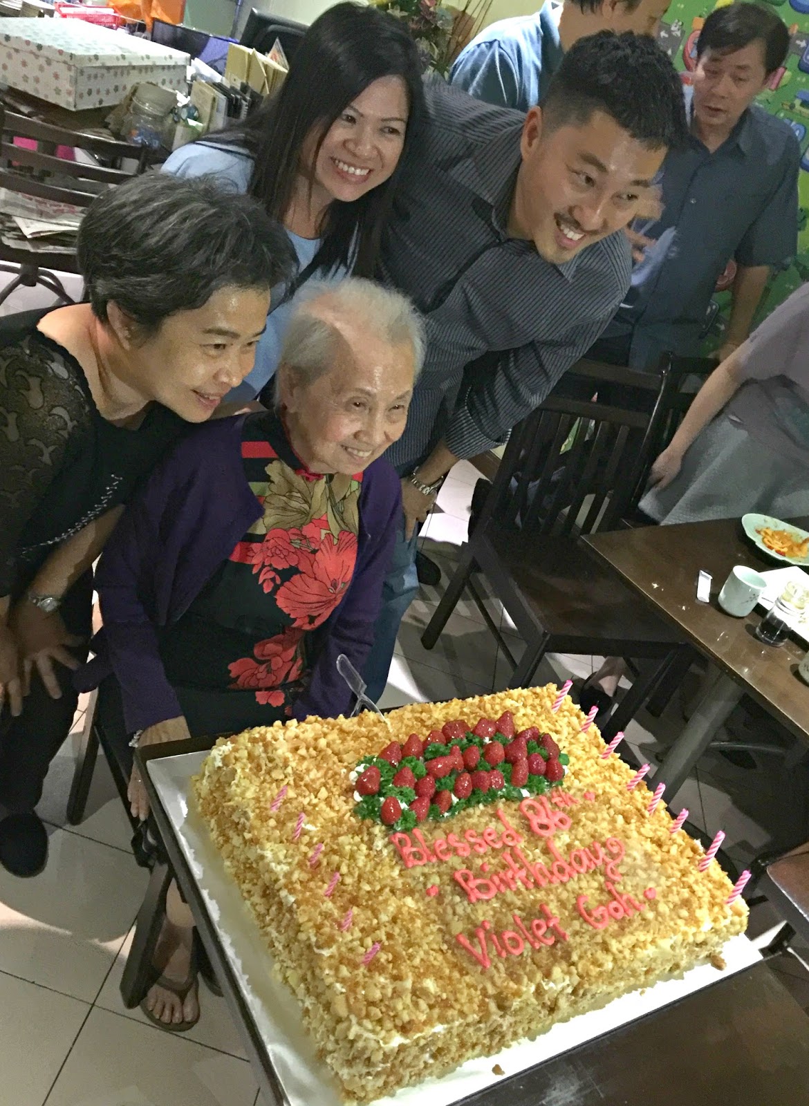 Cousin lighting up the candles for his mum. He would have wanted to put 86 candles if he wants to but it will take too much time to lit up anyway.